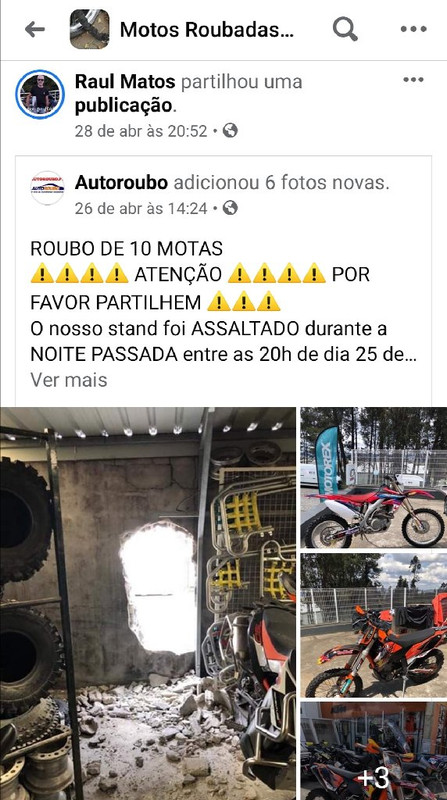 A ideia que tenho é que tem havido roubo de motos... ha dias roubaram um stand e levaram 10 motos e roubaram 2 ou 3 motas na zona de Lisboa