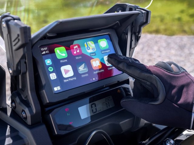A nova AfricaTwin vem ainda com um redesenhado sistema de fixação (em alumínio) de malas laterais e topcase, o TFT agora conta com conectividade AppleCarPlay e AndroidAuto...
