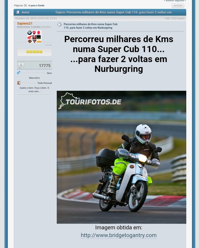 Sempre fui fã da Super Cub, mas confesso que esta última reencarnação (quando há uns 3 ou 4 anos a lançaram na Europa) deixou-me desiludido. Comparando com a Monkey, que eu acho que foi reinventada para muito melhor, e é uma moto que eu tenho muita vontade de ter, a Cub (que nunca foi vendida em Portugal até estas últimas versões) ficou, aos meus olhos, e quando a vi ao vivo aí em Évora, ...sem graça... mas é mera opinião pessoal, como é óbvio, nem sequer a experimentei. Há uns anos valentes encontrei uma antiga por cá e contei a história, aqui:http://respiroscooter.blogspot.com/2009/06/cub-e-o-palheiro.html Também há uns anos chegámos a iniciar conversações para trazer 4 Sym Symbas para Portugal via Holanda, para fazer o Lés a Lés, mas o projecto depois abortou por falta de interesse (ou fé) dos holandeses...Boa sorte com essa Cub !