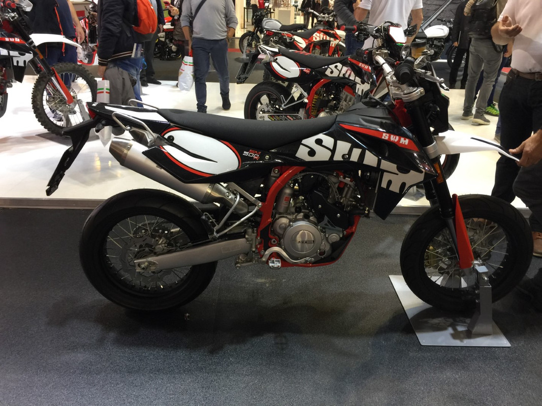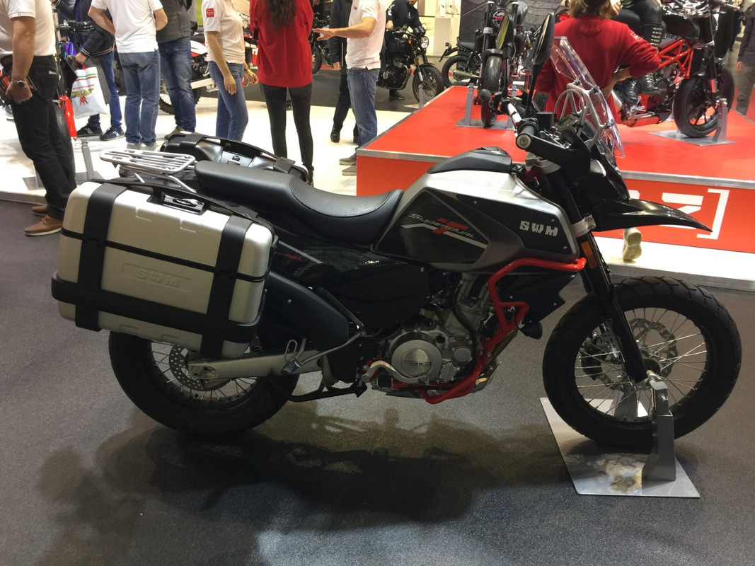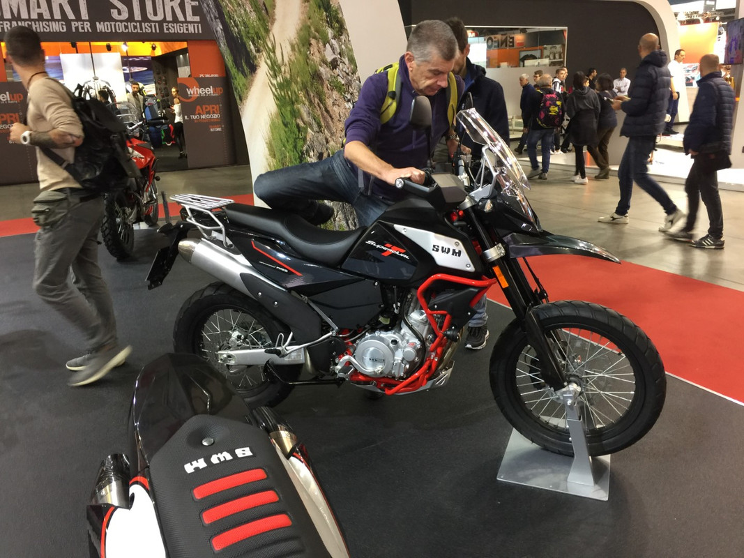 Aproveito o topico para largar umas fotos da Eicma... a gama da SWM é vasta embora com particular tendencia para as trails /cross e motos do tipo supermoto e onde tambem me parece que andam a "catrapiscar" umas nakeds
