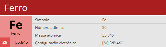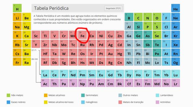 De acordo com a tabela periódica, tendo o Fe (Ferro) o numero atómico 26, ocupa na respectiva tabela, a "secção" dos metais de transição.