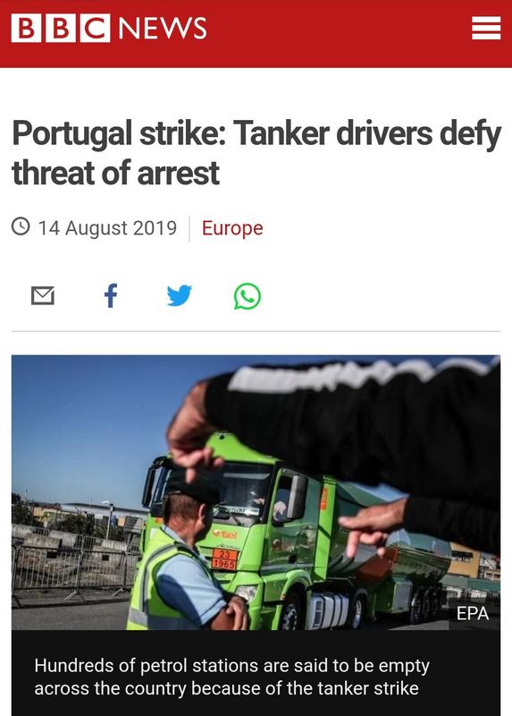 "os motoristas" não estão a ser ameaçados com prisão, nem sequer os que estão em greve, era o que faltava num estado de direito como Portugal, e se de facto isso acontecesse não seriamos Turquia ou Venezuela, talvez China, Coreia do Norte ou até mesmo Rússia.