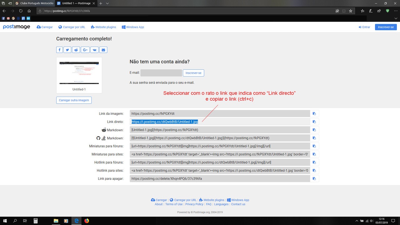 (também dá para copiar o link bastando carregar no botão azul no final do link mas às vezes não copia, por isso opto sempre pelo ctrl+c)