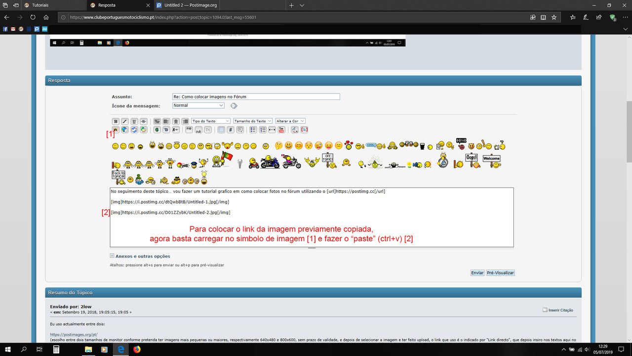 No seguimento deste tópico… vou fazer um tutorial grafico em como colocar fotos no fórum utilizando o