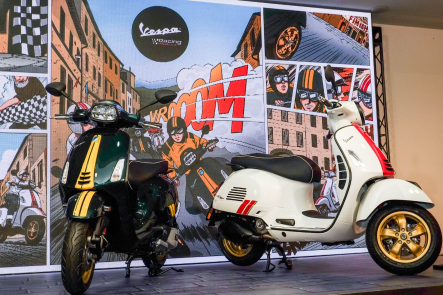 E terá sido mesmo isso o que inspirou esta nova série especial da Vespa, apresentado em esquemas de cores ligados a essas corridas, como o verde e amarelo e vermelho e branco.