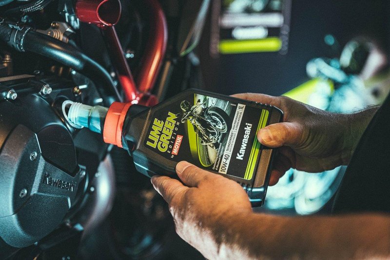 A Motul desenvolveu em parceria com a Kawasaki um novo óleo baseado nos seus óleos de melhores características ("Motul-Technosynthese® with ester technology") mas dando um carácter mais próprio da Kawasaki, com uma tonalidade verde limão e com a particularidade de também cheirar a limão.  :D