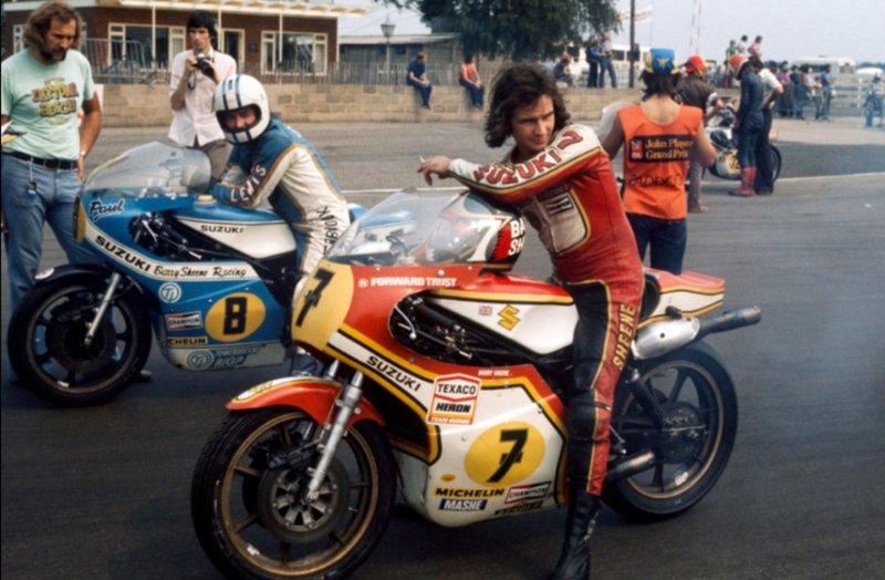 Chegaram a caricaturar o Barry Sheene precisamente num desses momentos de pura descontração aos comandos da sua 500cc.