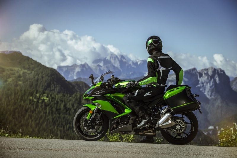 As malas laterais aumentam o aspecto touring da Z1000SX. O sistema permite a fácil remoção das malas e confere uma melhor integração na seção traseira da moto, assegurando uma aparência elegante e desportiva mesmo quando as malas são removidas.