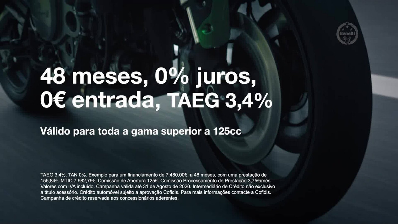 Para os interessados, a Benelli (re)lançou a sua campanha (de Verão) Zero Juros para "toda" a gama mas apenas superior a 125cc, com validade até 31 Agosto de 2020.