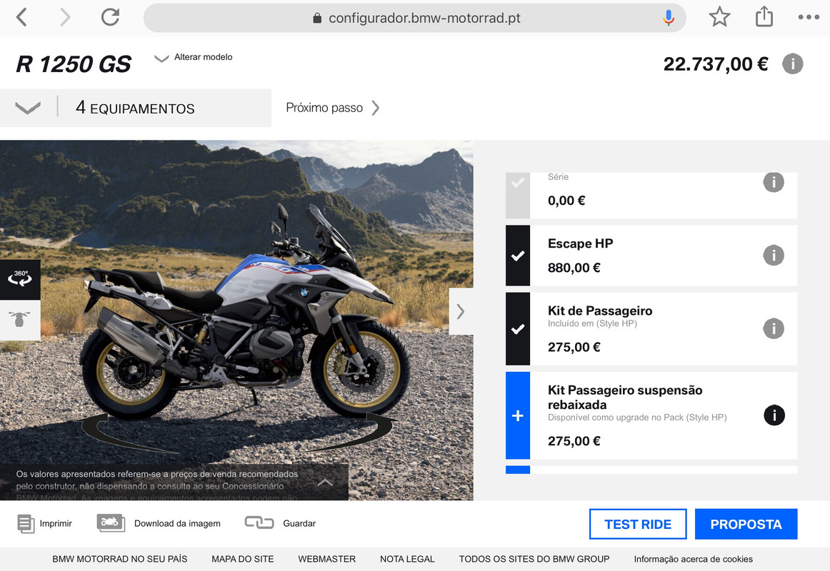 A este valor junta pelo menos uns 1300 € para malas e mais 650 para um navigator 6.