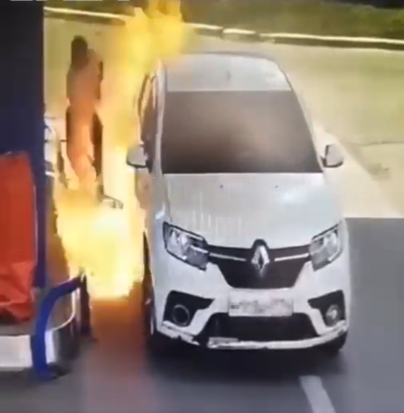 Não sei se era para ver o interior do depósito enquanto era atestada, ou o que raio estaria a fazer, mas aquilo só podia dar numa ignição.