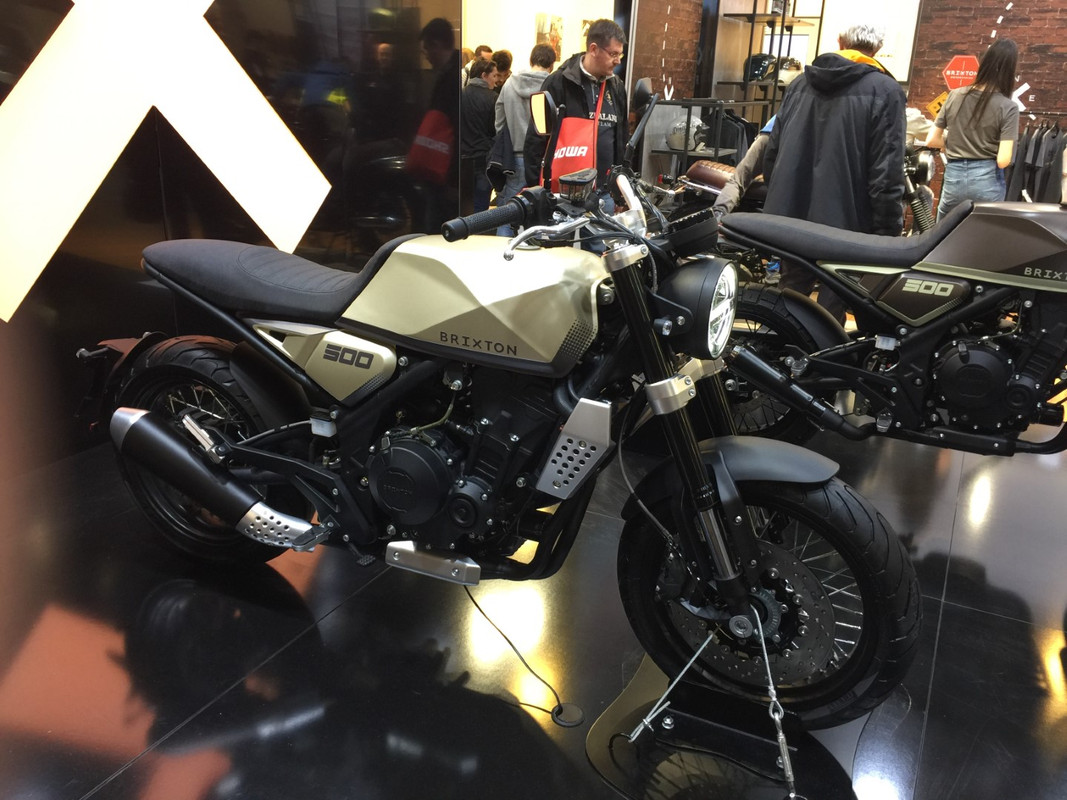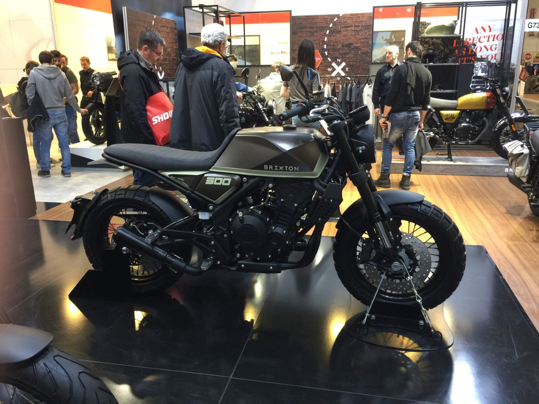 Da Brixton conhecemos as suas 125 e 250, mas na EICMA pudemos ficar mirar a nova BX500, de momento ainda em forma de concept movido por um motor bicilíndrico DOHC 8V de 486 cc e que é refrigerado por liquido. Debita 47 CV.