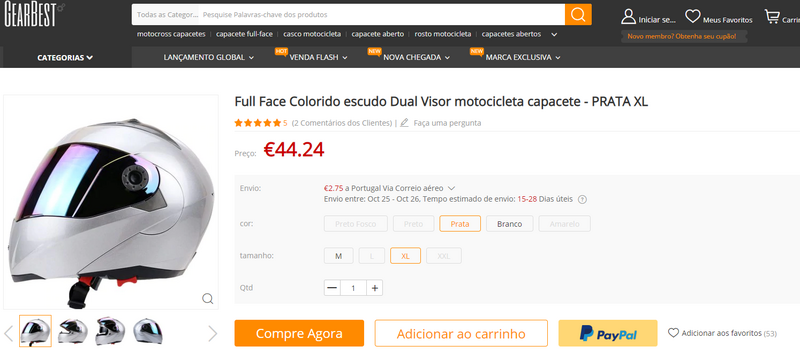 Pois ontem e numa pesquisa casual pelo Gearbest, deu-me para ir ver o que tinham para lá daquilo que costumo consultar (normalmente gadgets Xiaomi), ou seja...fiquei a olhar para os capacetes que vendiam por pouco mais de €40.