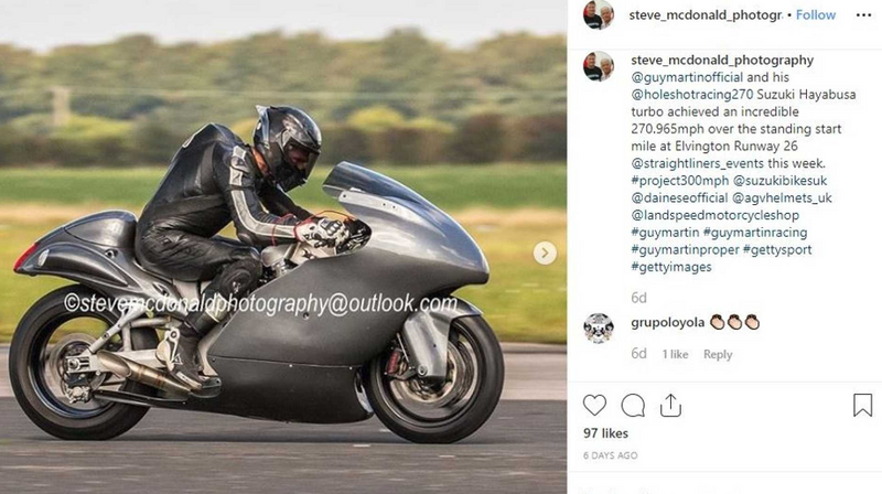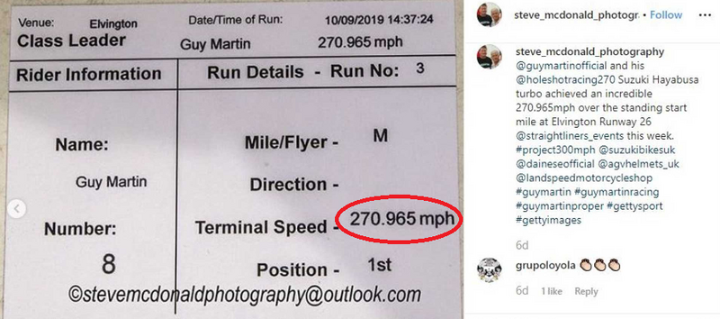 Lembrei-me deste tópico porque aqui há dias o Guy Martin, que conhecemos por exemplo do Isle of Man TT e onde já conquistou diversos pódios e records mundiais de velocidade...agora levou também uma Suzuki Hayabusa modificada até umas impressionantes 270.965mph.