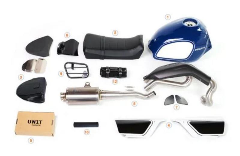 Os exemplos que podem ver abaixo são os 'Fuoriluogo kits' para a Scrambler e estão disponíveis em 2 tipos.