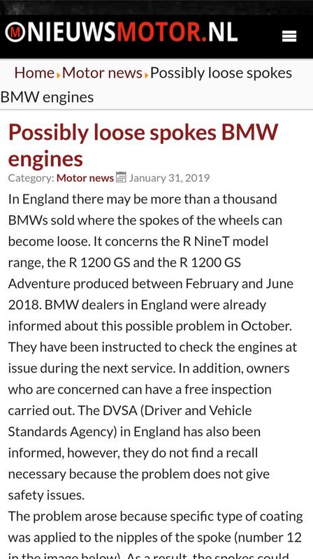 Responsáveis da BMW já informaram (e confirmaram) que a situação afectará várias unidades.A partir de 7 raios na jante que revelem sintomas de estar desapertados ou soltos, a marca veio já dizer através do porta voz da BMW, Gerhard Lindner, que não serão reapertados/recolocados... Nesses casos será logo feita a substituição por uma jante de raios nova, seja na roda da frente ou de trás. Poderão estar afectadas com este problema 13.500 motos da marca, entre GS's e R-NineT.Notícia integral: https://www.motorradonline.de/motorraeder/bmw-probleme-mit-losen-radspeichen.1064580.html