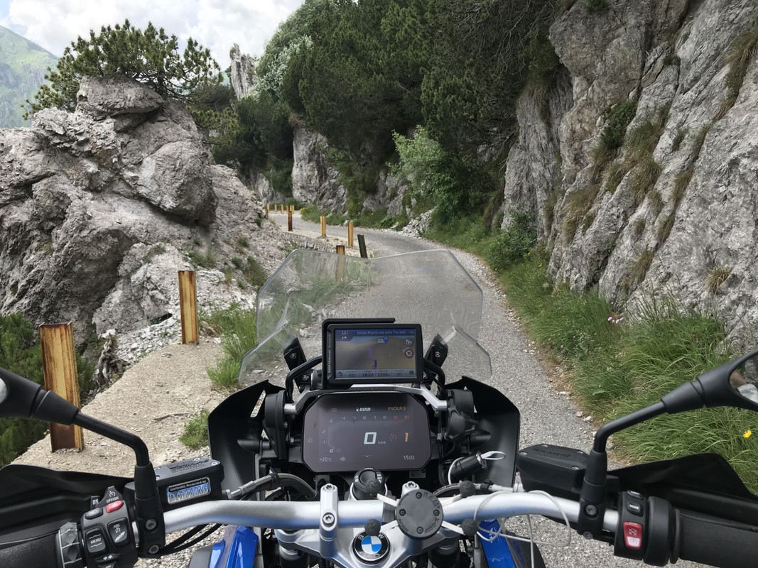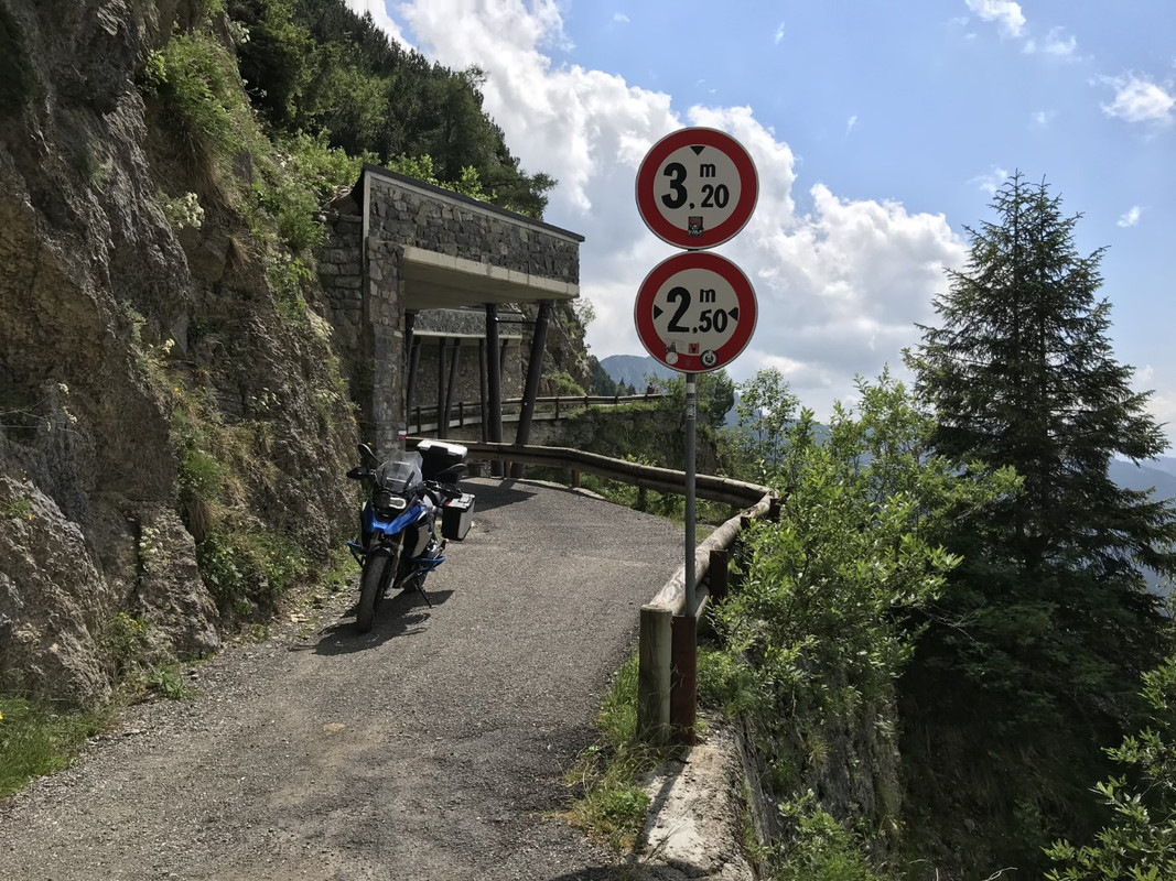 O alivio de trânsito fez-se sentir de imediato, e tirando alguns ciclistas estas vias estão praticamente desertas, permitindo e convidado a explorar um pouco mais a ciclistica, motor e travões da GS,  pois esta zona ja é “off the beaten path”. O traçado para além de natural é simplesmente fabuloso, com um grau de sinuosidade quase a rasar a tortura, sempre bem delineada entre a montanha e a correspondente ravina mais ou menos profunda do lado oposto.