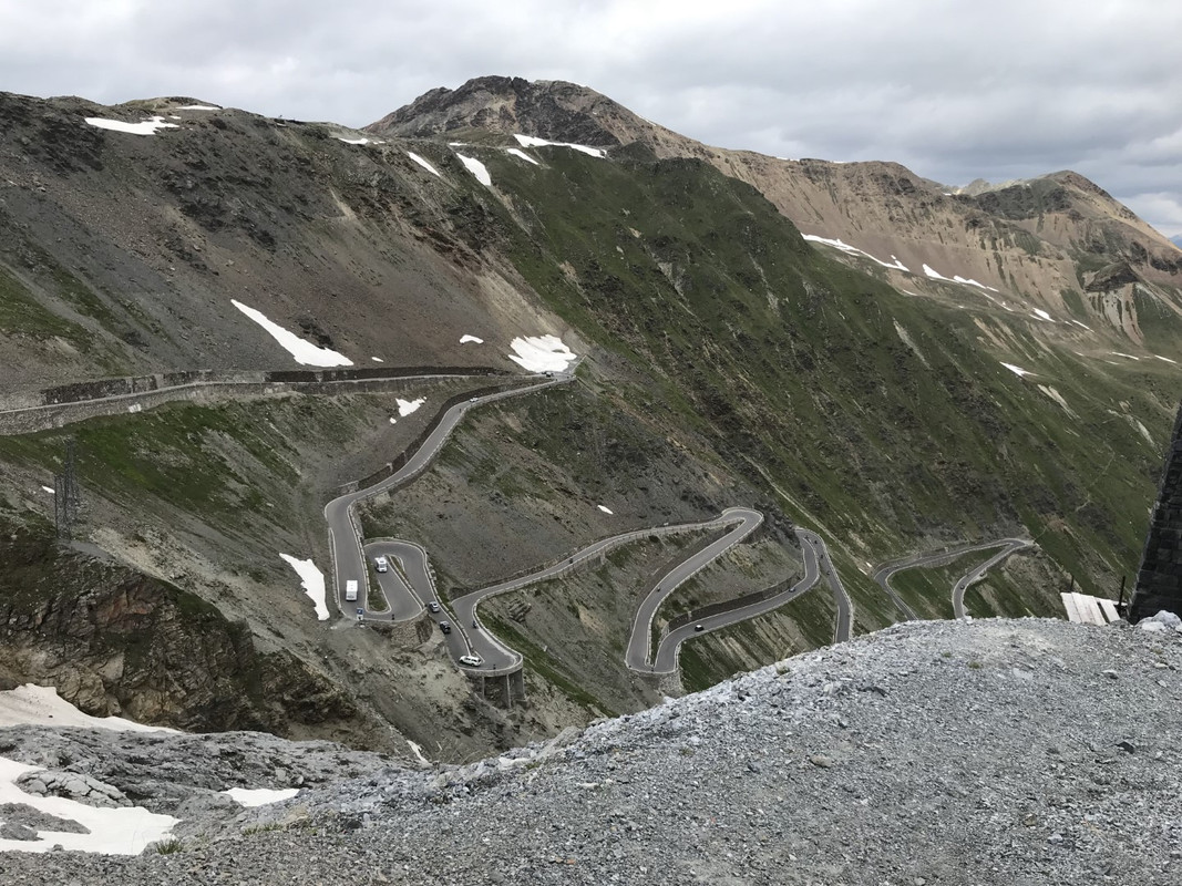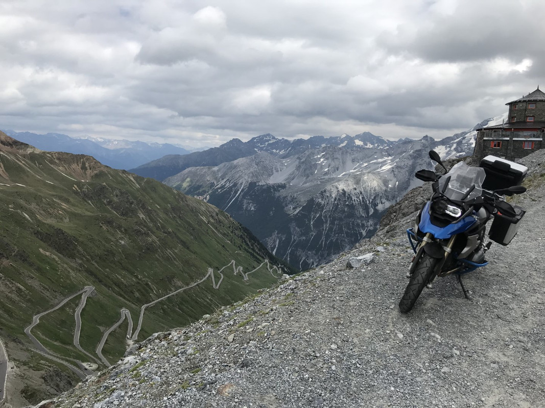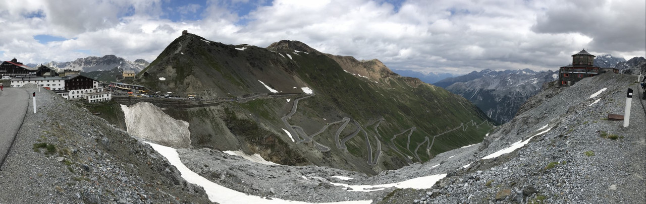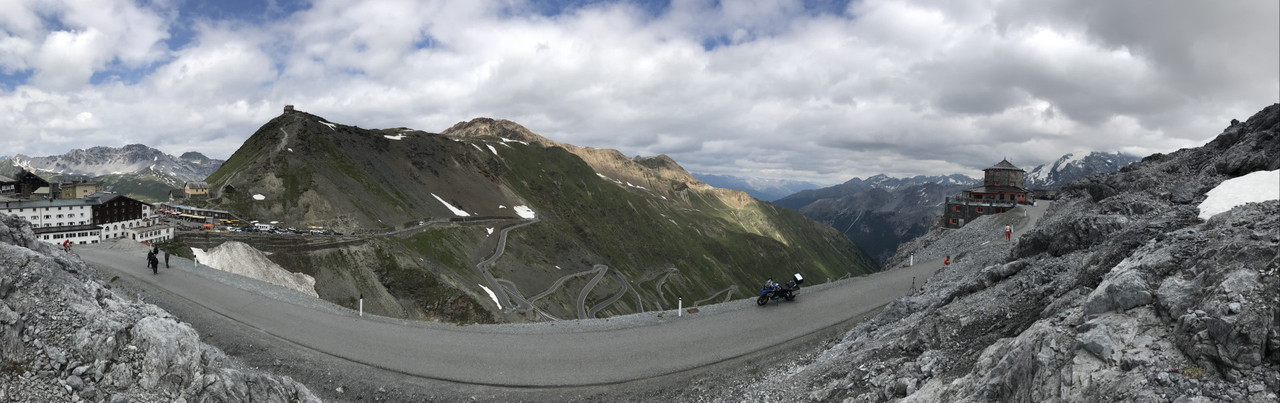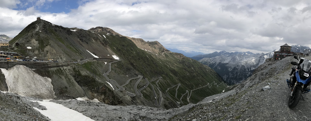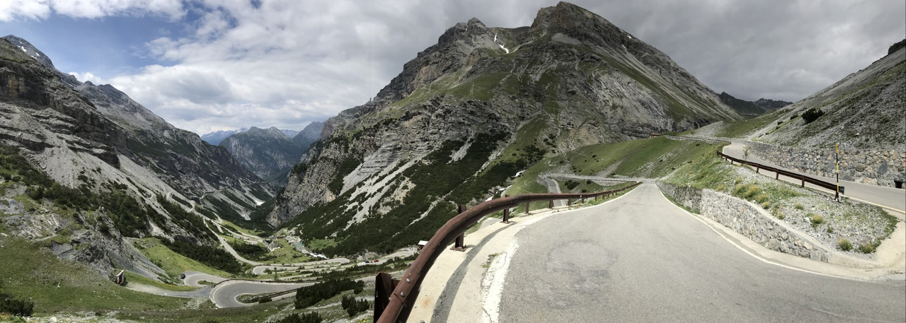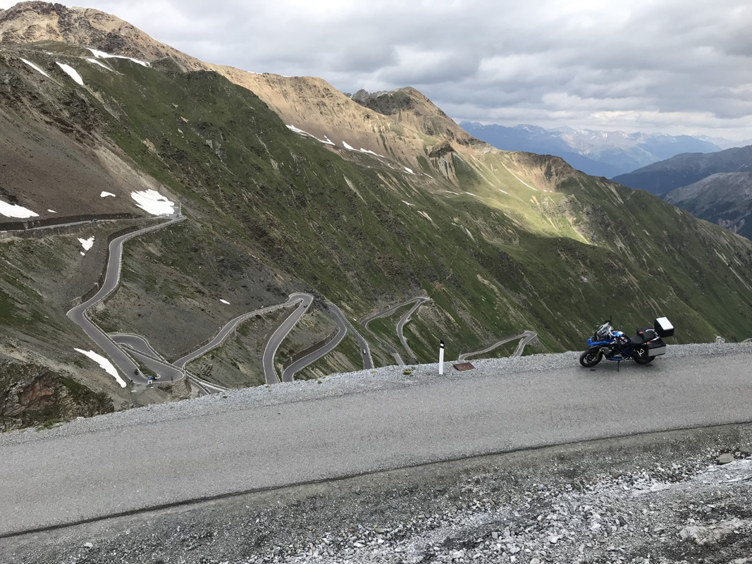 Este passe não é dos mais famosos mas é longo qb e tem todo o DNA dos passos do norte de Itália: sinuoso, ascensões e descidas abruptas, estreito e uma tortura para motor e travões, acabo por descer o Gavia em modo “turista” e a seguir meter a moto em modo Dynamic e cruzar o Martirolo de faca nos destes... ja passava do meio dia quando avistei o imponente vale de Bormio e comecei a subida para o rei: O passo do Stelvio, pelo lado Sul com os seus 38 Tornanti e um bom par de tuneis bem traiçoeiros. Esta vertente nao tem a fama e o glamour do outro lado, que é mais “cartoonizado” com os seus 48 ganchos, mas tem muito mais condução e as vistas sao top.