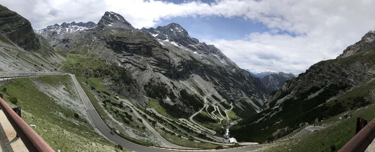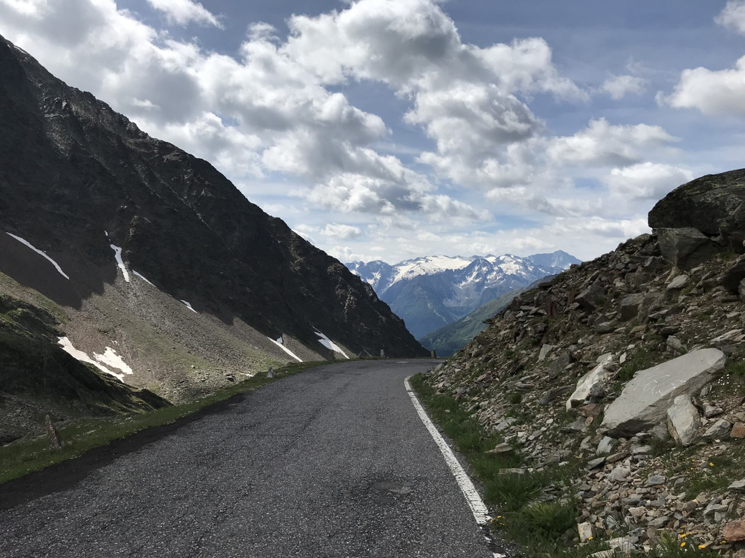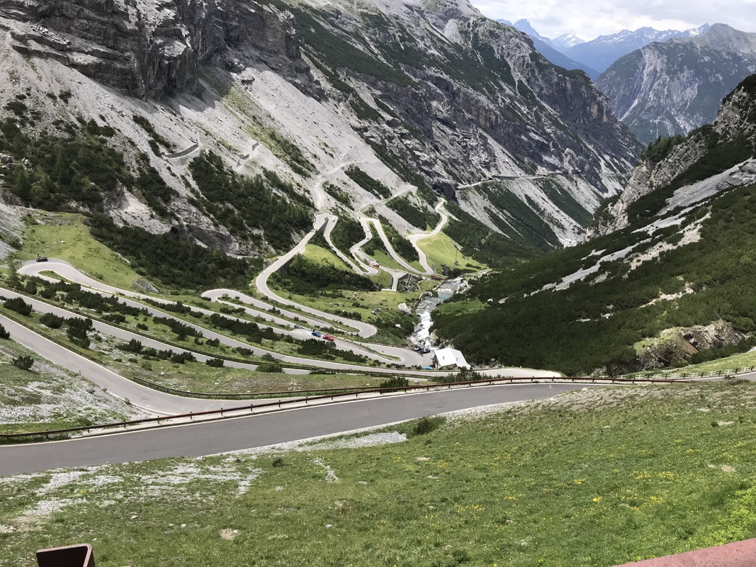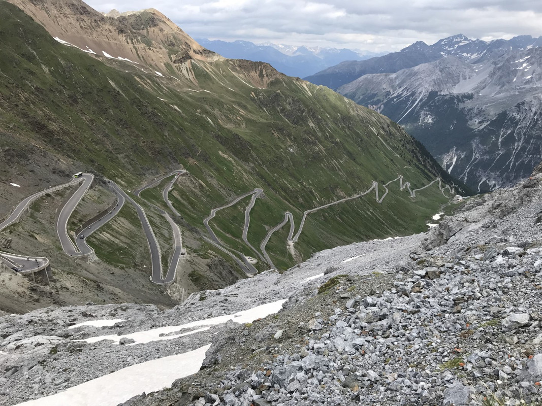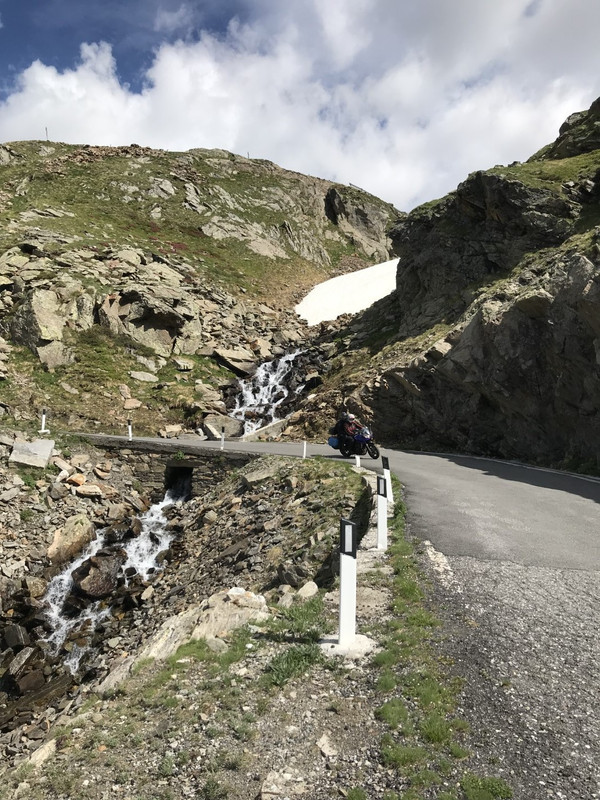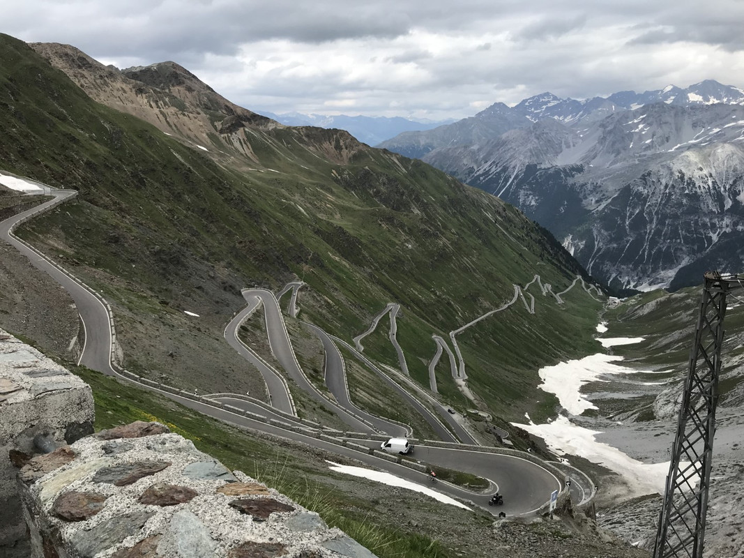 Este passe não é dos mais famosos mas é longo qb e tem todo o DNA dos passos do norte de Itália: sinuoso, ascensões e descidas abruptas, estreito e uma tortura para motor e travões, acabo por descer o Gavia em modo “turista” e a seguir meter a moto em modo Dynamic e cruzar o Martirolo de faca nos destes... ja passava do meio dia quando avistei o imponente vale de Bormio e comecei a subida para o rei: O passo do Stelvio, pelo lado Sul com os seus 38 Tornanti e um bom par de tuneis bem traiçoeiros. Esta vertente nao tem a fama e o glamour do outro lado, que é mais “cartoonizado” com os seus 48 ganchos, mas tem muito mais condução e as vistas sao top.