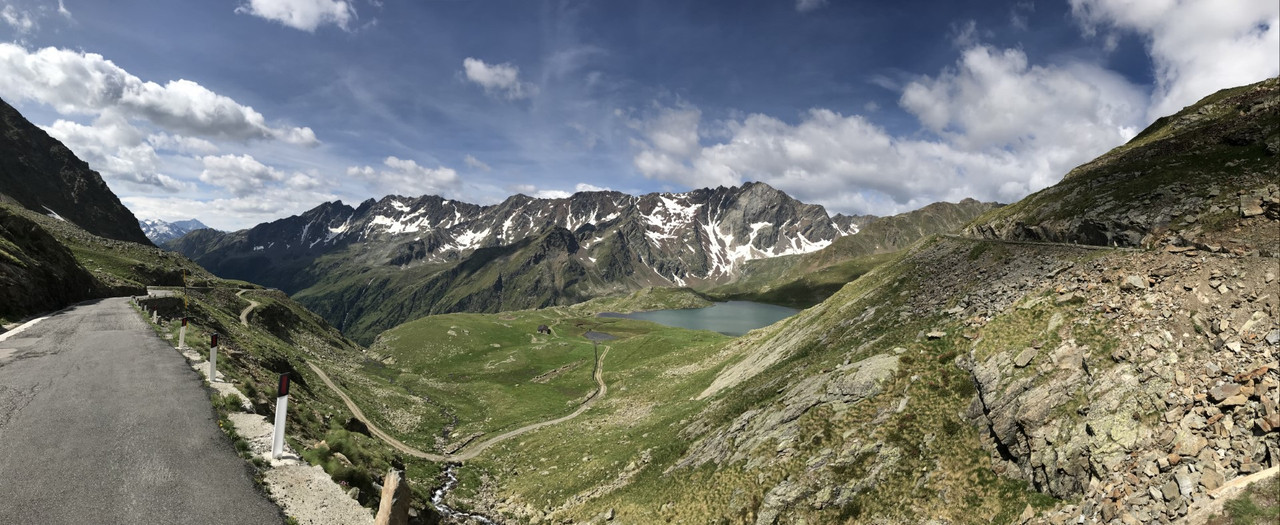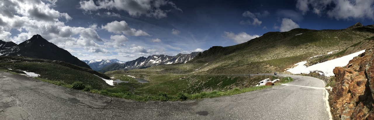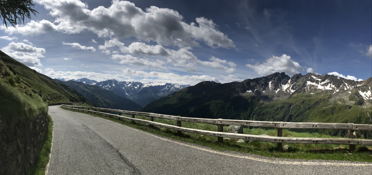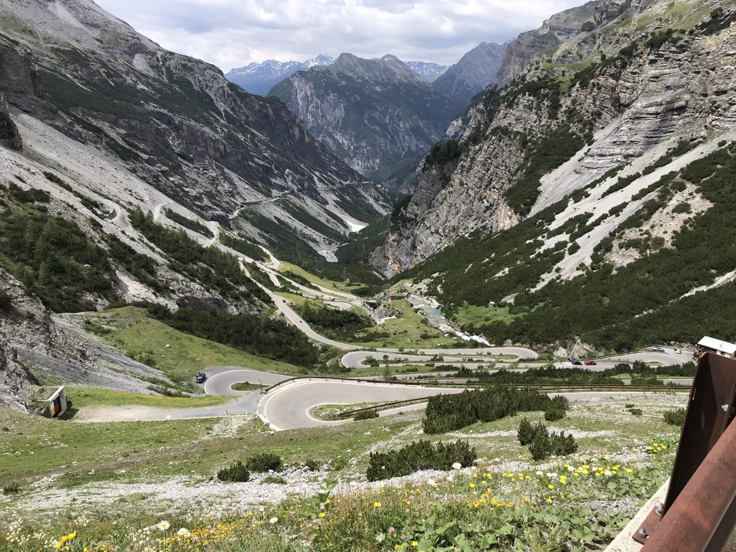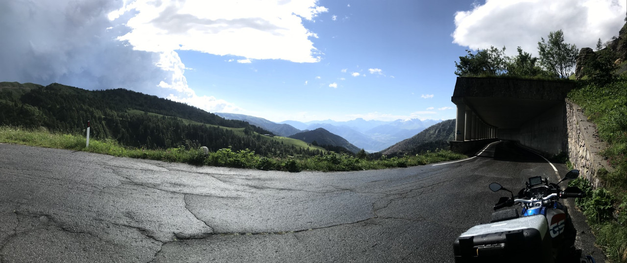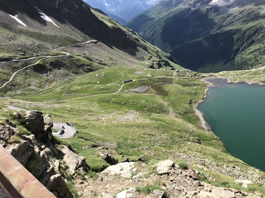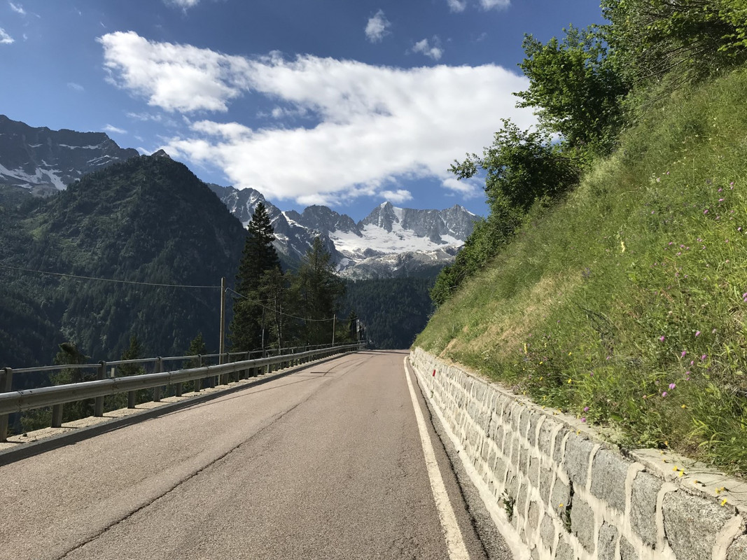 Este passe não é dos mais famosos mas é longo qb e tem todo o DNA dos passos do norte de Itália: sinuoso, ascensões e descidas abruptas, estreito e uma tortura para motor e travões, acabo por descer o Gavia em modo “turista” e a seguir meter a moto em modo Dynamic e cruzar o Martirolo de faca nos destes... ja passava do meio dia quando avistei o imponente vale de Bormio e comecei a subida para o rei: O passo do Stelvio, pelo lado Sul com os seus 38 Tornanti e um bom par de tuneis bem traiçoeiros. Esta vertente nao tem a fama e o glamour do outro lado, que é mais “cartoonizado” com os seus 48 ganchos, mas tem muito mais condução e as vistas sao top.