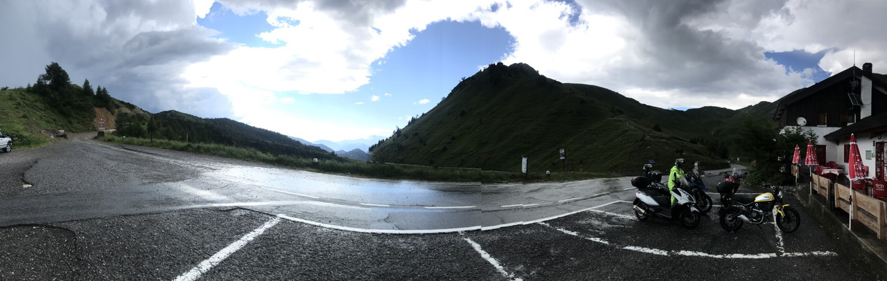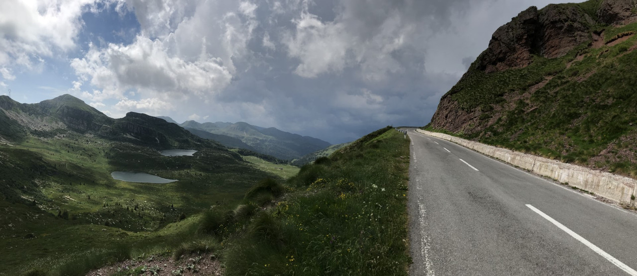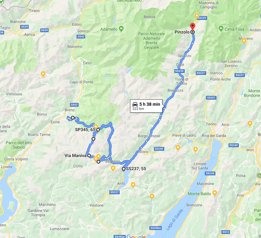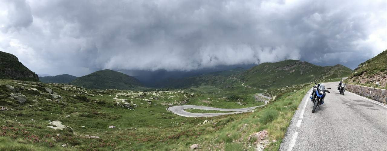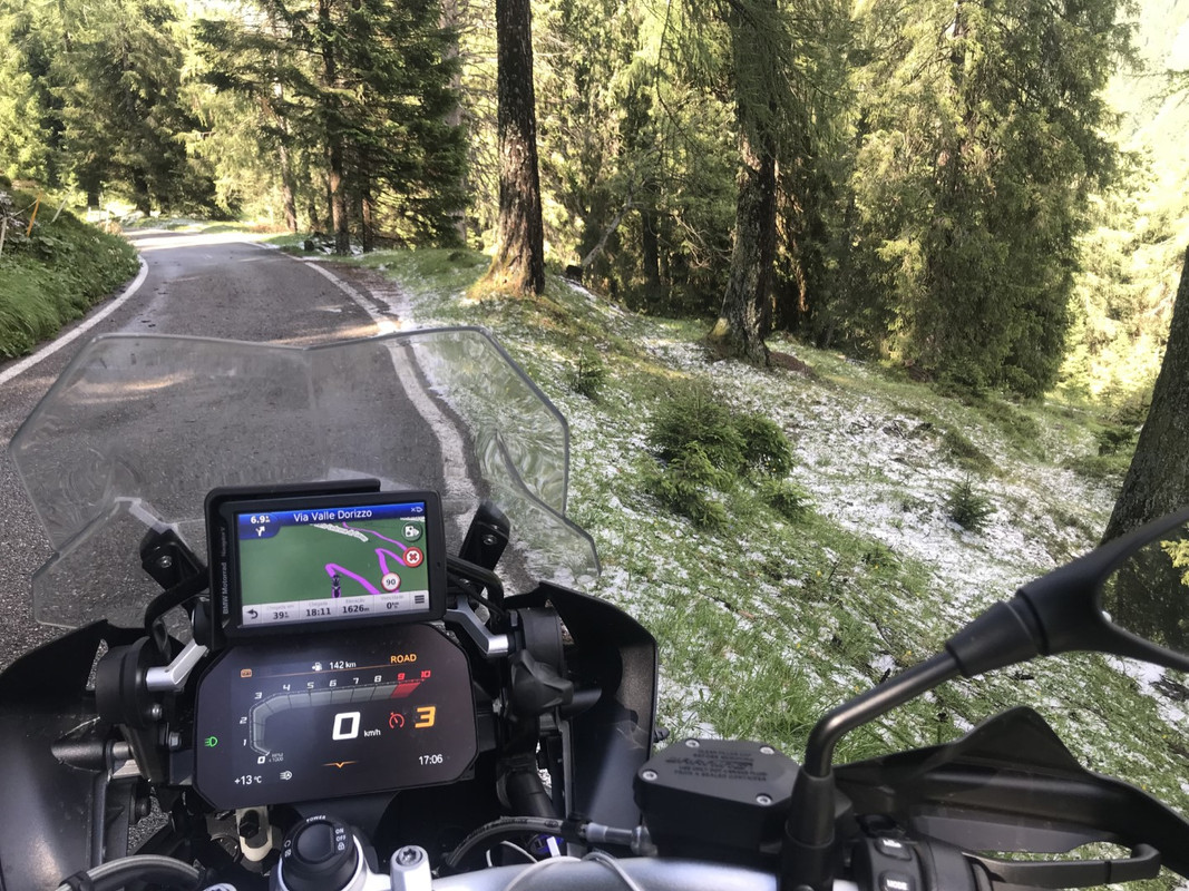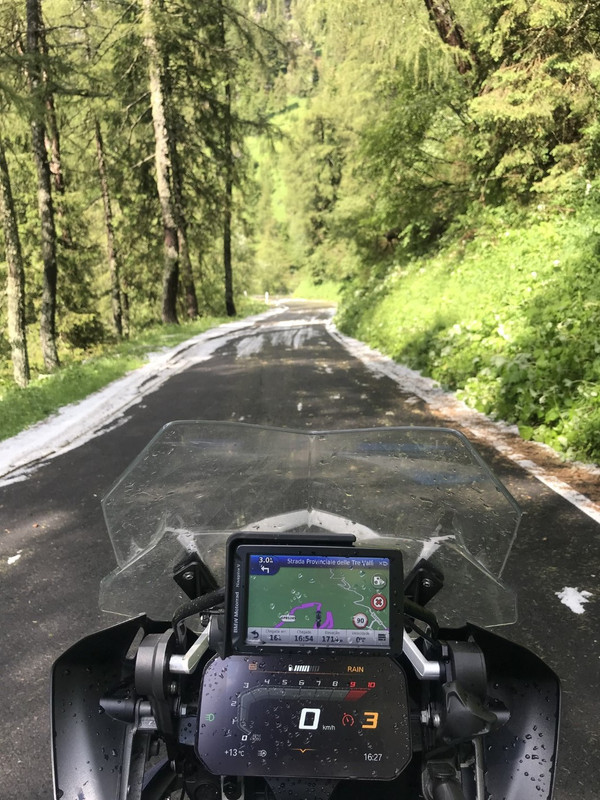 Para ai 1 hora mais tarde, o sol regressou e segui em direção a Breno que me iria deixar a jeito do passo Vivione e do passo Gavia, mas surprise: A estrada foi fustigada por uma tempestade que provocou a queda de dezenas de árvores e derrocada de pedras e esta fechada ao trânsito. Sigo na mesma, para uns kilometros depois ser surpreendido por uma barreira policial que estava a multar quem como eu não tinha respeitado a proibicao de circulacao. Felizmente parei um pouco antes e aproveitando o facto da policia nao conseguir dar conta da clientela dou meia volta e regresso pelo mesmo caminho, o que obrigou a ir dar a volta ir tomar a direção de Madona Di Campiglio. O dia já ia longo e fico num simpático Hotel em Pinzolo.