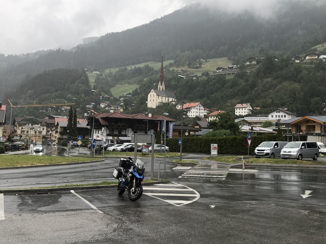 Depois do verdadeiro orgasmo que é o Stelvio, tanto Resia como os vales Austríacos ate Solden são quilômetros chatos. Para ajudar começa a cair uma chuva copiosa e gelida, o que tirando o incômodo até foi muito útil para limpar a moto depois da lama que ela tinha ganho no passo Crocedomini e pelas 17H00 chego a Solden e decido terminar o dia mesmo por aqui. O dia esta tao mau que paro num SPAR para comprar qualquer coisa para comer e ataco o bookig e reservo um quarto no primeiro hotel que aparece: a Pension Sonnenheim, onde sou recebido da forma mais acolhedora e simpatica que deve possivel