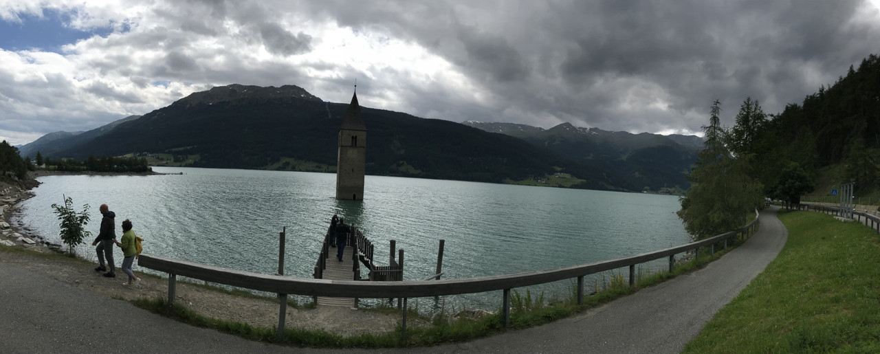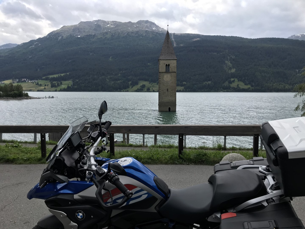Depois do mandatorio Apfel Strudel, ou melhor, do Strudel de Mela porque estamos em Italia, esta na altura de de descer os 48 tornanti e tomar a direcao do passo de Resia e do lago com o campanário talvez mais famoso do mundo.