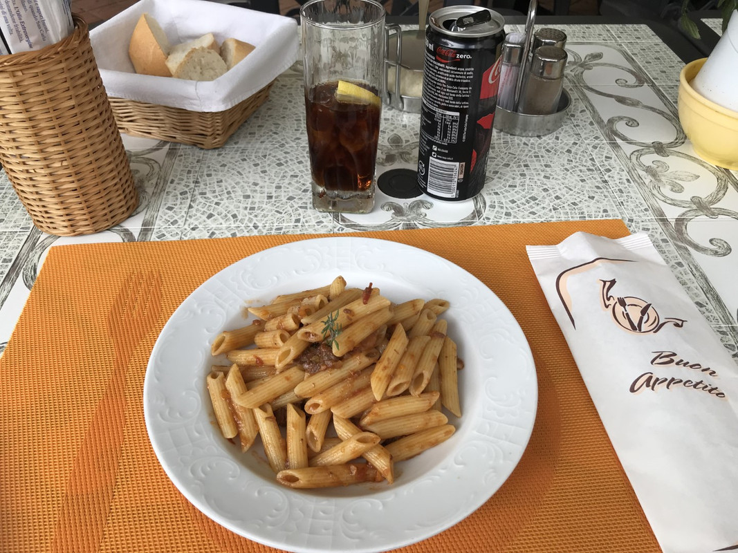 Dos mais de 30 graus à beira do Lago Garda, a temperatura não só desceu como começou a ameaçar chuva e uma vez que ja estávamos quase na hora de almoço, paro no primeiro restaurante que aparece e estaciono a GS por entre dezenas de motos de todos os tipos, marcas, idades e nacionalidades e retomo as energias com um belo prato “penne al ragu de carne” enquanto que da esplanada vou vendo e ouvindo passar dezenas de companheiros com as suas belas máquinas... desde Hondas Sh a Ducatis 916 SPS... mesmo que a comida estivesse ma, o que seria praticamente impossível nesta zona de Itália, o almoço dificilmente seria mau   :D