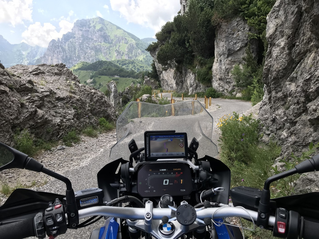 A partir do meio da subida ja se sente os efeitos da altitude e as pastilhas chiam em protesto a cada travagem depois de ja terem sido submetidas a 3 testes de tortura nesta manha, mas aqui nao ha como poupar travão, cada curva é um exercício de 180 graus a exigir baixa velocidade, o uso e abuso do guiador e de muita inclinação. Antes de cada curva é mandatório uma ave maria e um padre nosso para não encontrarem um carro a vir no sentido contrário porque se tal acontecer o tombo é certo pois é praticamente  impossível parar a moto a meio de um Tornanti destes.