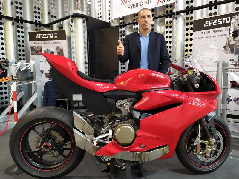 Efesto que já tinha levado na feira de Milão do ano passado um protótipo de um kit híbrido a instalar em Ducati's Panigale's, mas ainda de aspecto "algo rudimentar", na recente feira de Milão (Eicma 2019) voltou a apresentar o mesmo kit, denominado