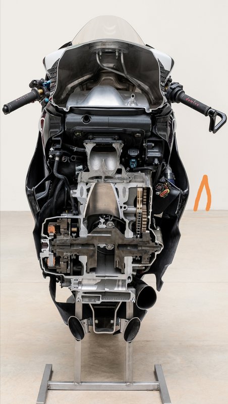Uma moto cortada ao meio para ser apreciada pode ser comparada a isto?