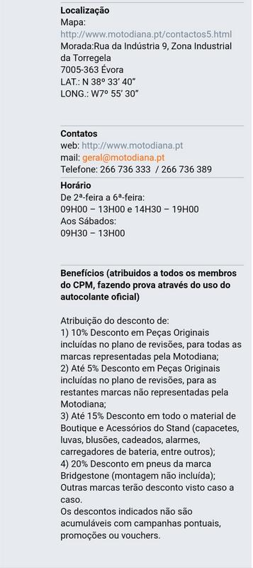 Mas agradou-me esse protocolo de descontos com a Motodiana, talvez valha a pena dar um pouco mais de atenção a isso.