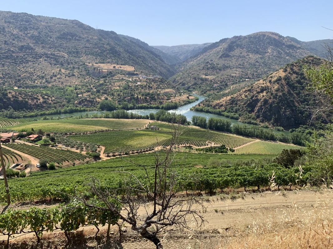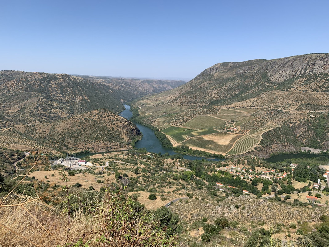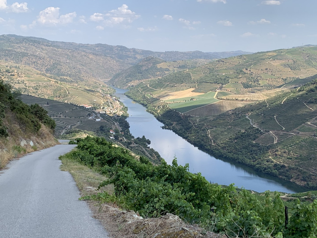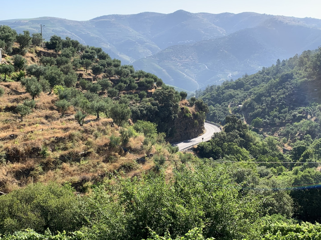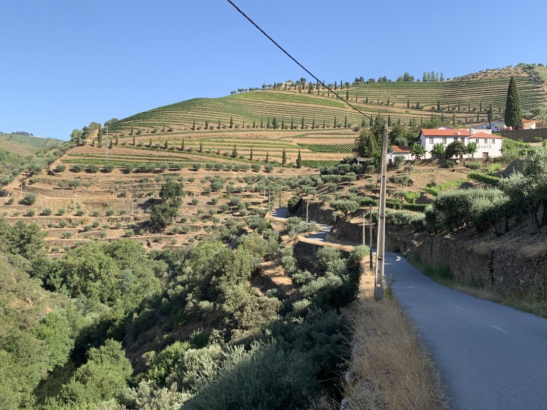 O calor em Alijo estava insuportável e tomei a opção “adventure” para regressar a SJ da Pesqueira: segui a M597 ate dentro da aldeia de Castedo onde apanhei uma pequena estrada em empedrado que me levou diretamente a uma encosta com vistas privilegiadas para o Rio Douro, na parte final a estrada fica um bocado “emocionante” com meia-dúzia de ganchos em terra e umas subidas dentro de vinhedos que creio pertencerem a quinta dos Malvedos... regressado a N212, voltei a tomar o caminho de São João da Pesqueira, passando por mais um par de miradouros com vistas de 1 categoria.