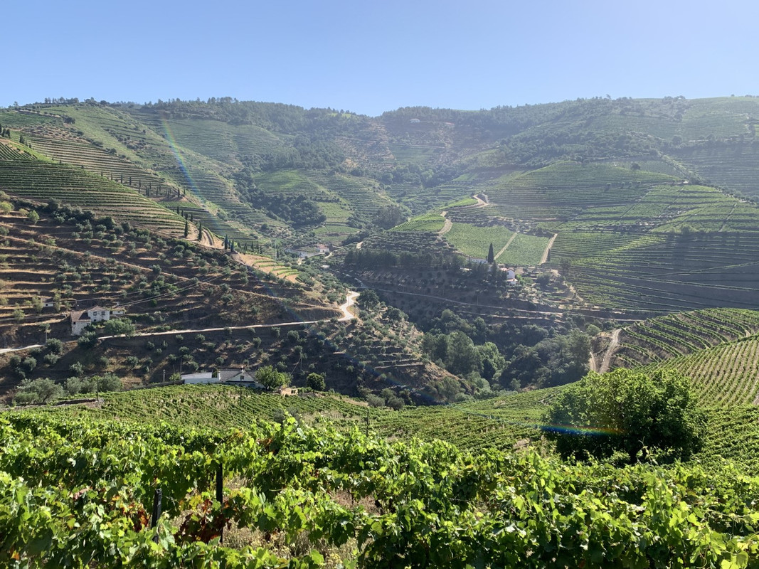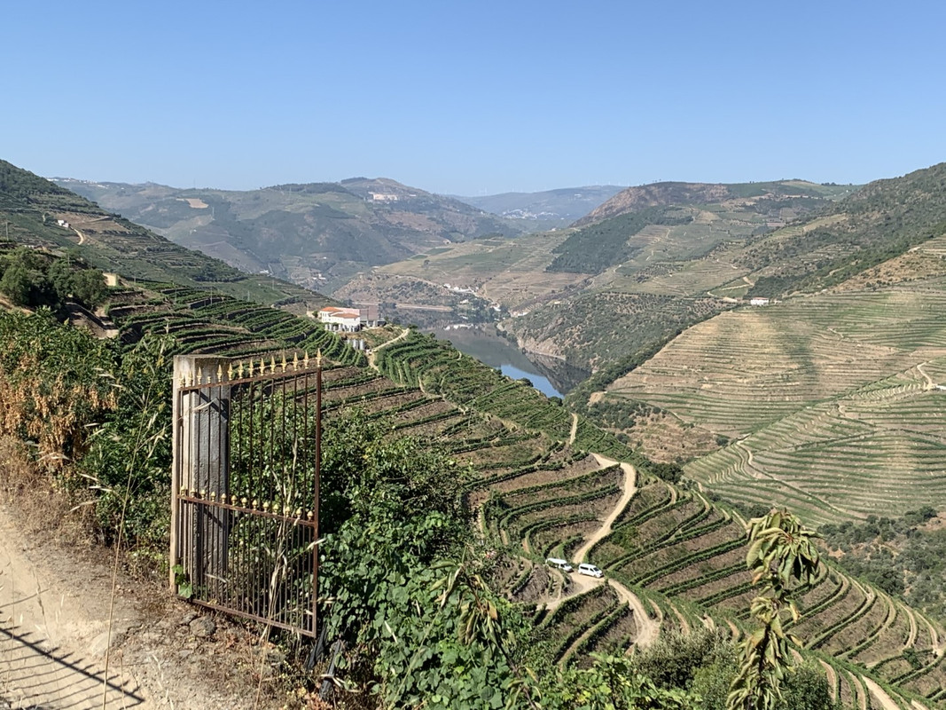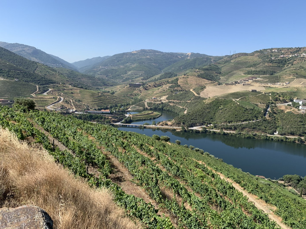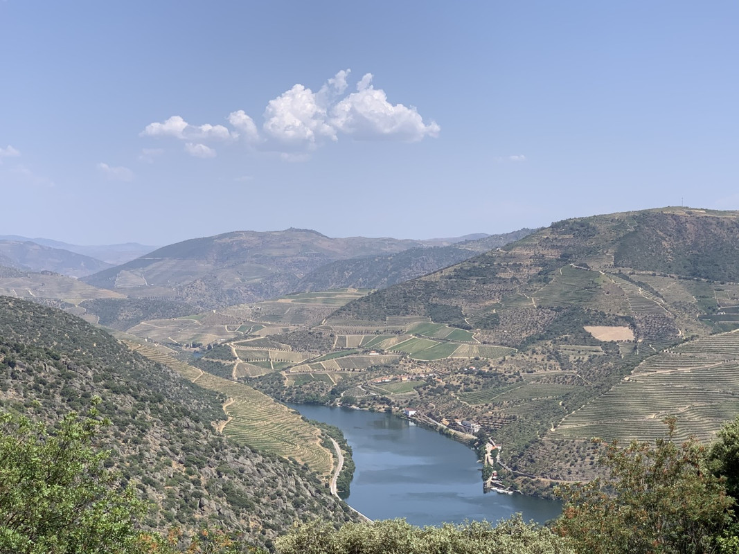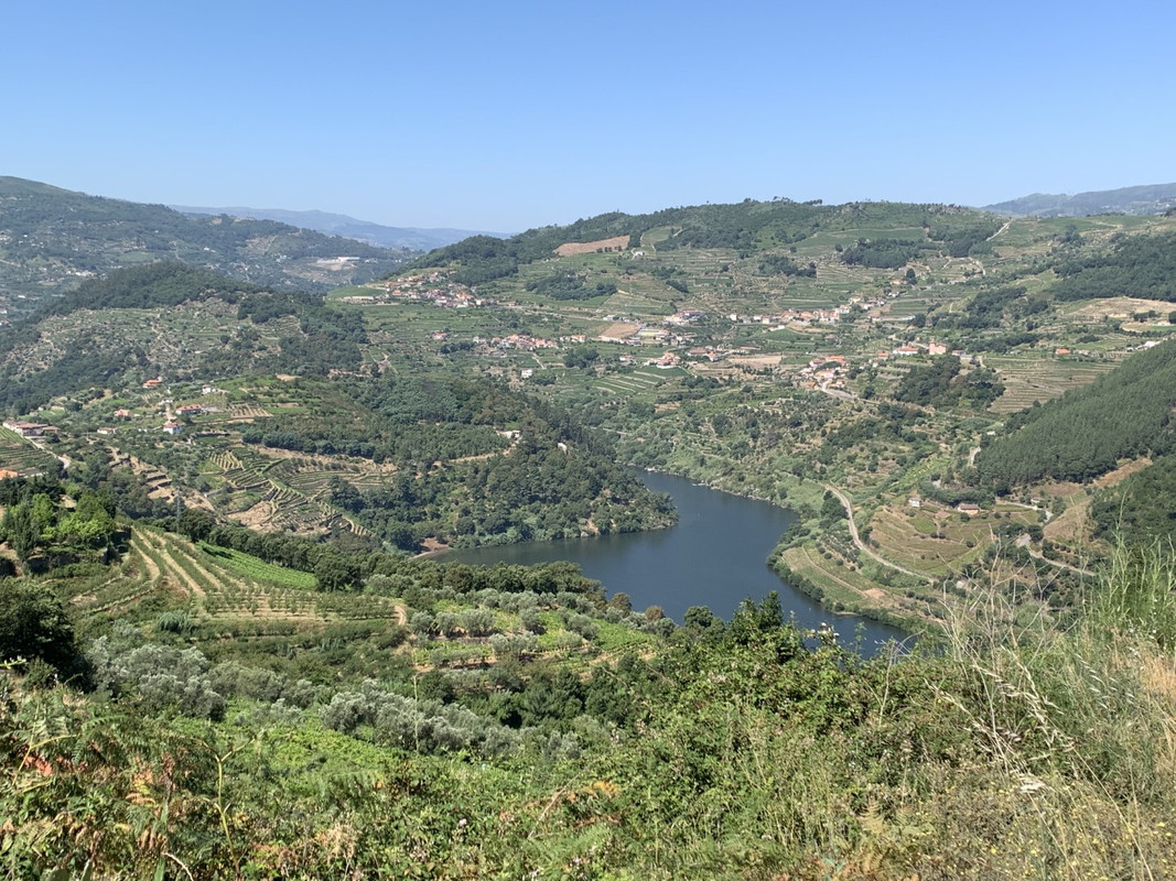 O calor em Alijo estava insuportável e tomei a opção “adventure” para regressar a SJ da Pesqueira: segui a M597 ate dentro da aldeia de Castedo onde apanhei uma pequena estrada em empedrado que me levou diretamente a uma encosta com vistas privilegiadas para o Rio Douro, na parte final a estrada fica um bocado “emocionante” com meia-dúzia de ganchos em terra e umas subidas dentro de vinhedos que creio pertencerem a quinta dos Malvedos... regressado a N212, voltei a tomar o caminho de São João da Pesqueira, passando por mais um par de miradouros com vistas de 1 categoria.