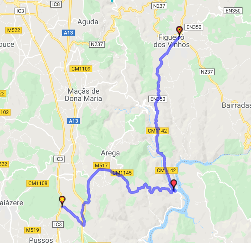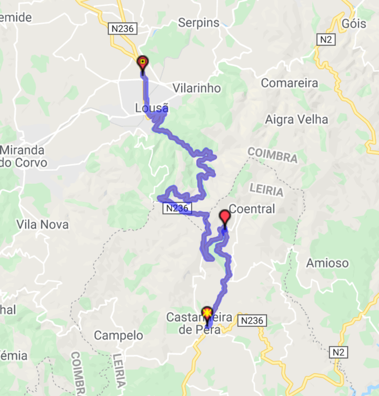 A ida foi conciliada no primeiro dia com trabalho, pelo que haveria a necessidade de passar pela zona de Ansião e Viseu. Como tinha a liberdade de ligar os pontos de trabalho sem pressão de horários ou trajectos, aproveitei para fazer uma passagem pela minha estrada preferida da zona centro: a CM 1142 até Figueiró dos Vinhos, de onde tomei a N236 (serra da Lousa) e depois um pouco da N2 até ao Almoço em Penacova. Após Penacova, segui o percurso da N2 até Viseu. Dormi em Celorico da Beira, num hotel a beira da A25, perfeito para uma pernoita de viagem.