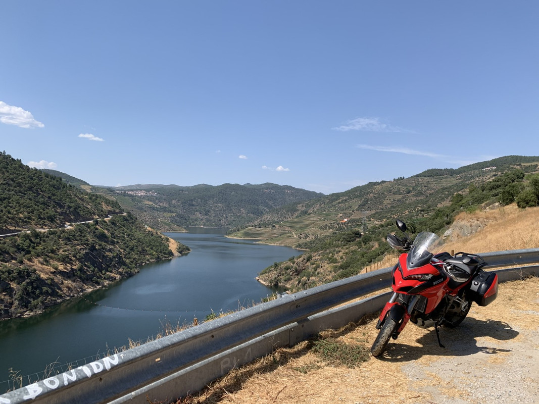 O dia ja ia longo em Kms e a canícula fazia-se sentir de forma acentuada, sobretudo no vale do tua onde o ar estava completamente parado e insuportavelmente quente. A Multi nao descia dos 90 graus e o termômetro não descia dos 42, chegando aos 46. Decidi arranjar hotel na zona do Pinhão (de preferência com piscina) e dar descanso a Multistrada. Acabei por ficar em Tabuaço e sem piscina, mas com um looooongo duche.