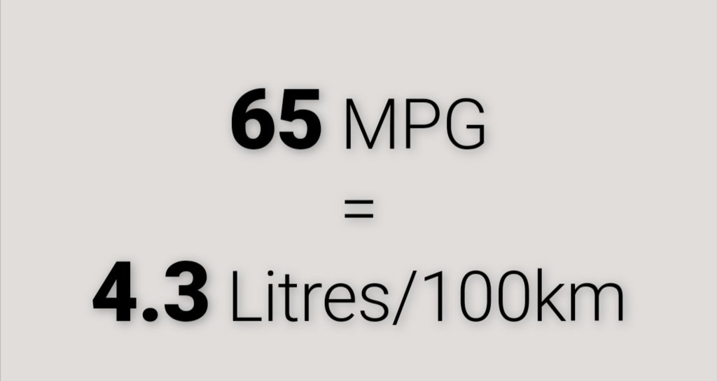 No teste que referi anteriormente indicam uma média de consumo de 65mpg, o que traduzido para L/100kms fica a uma distância considerável.