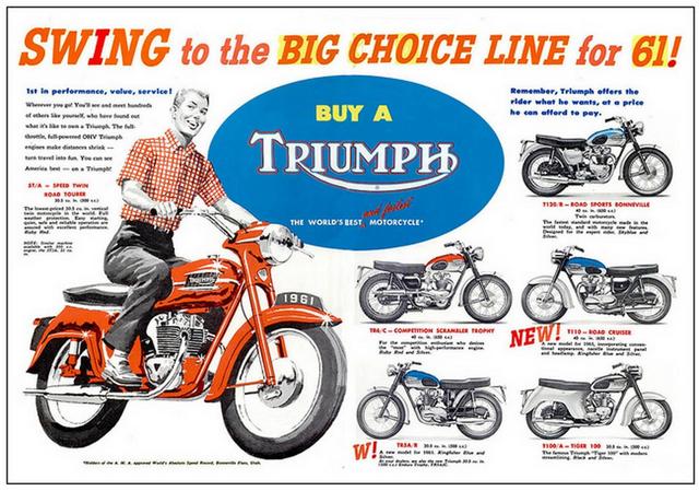 Por acaso estava numa só de brincadeira e sabendo que as Triumph eram na altura provavelmente o mais alto standard da indústria (a seguir pelas demais) em motociclos, mas aquilo que estás a dizer parece-me incorrecto.