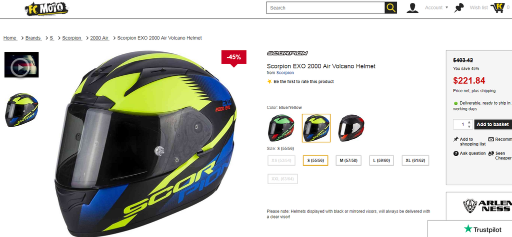 O site FC-Moto está neste momento com alguns modelos da Scorpion (full-face) com 45% de desconto.