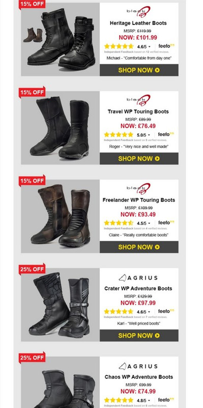 nota: Tomtom, Garmin, Klim, Sw-Motech e Shoei não estão abrangidos nesta "redução" de preço