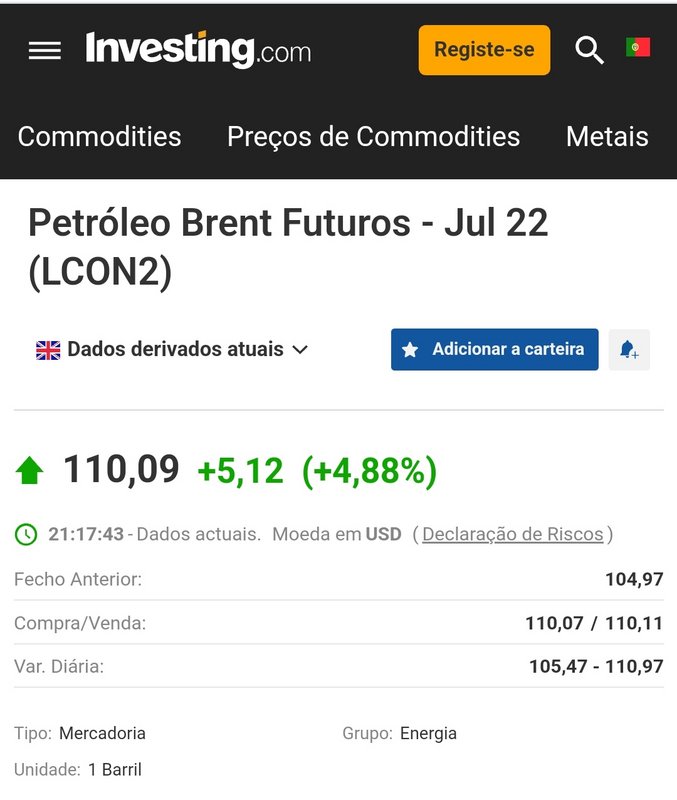 Curiosa hoje a queda abrupta no preço do barril de Brent.