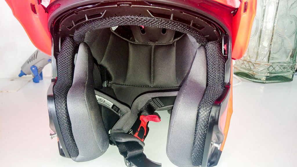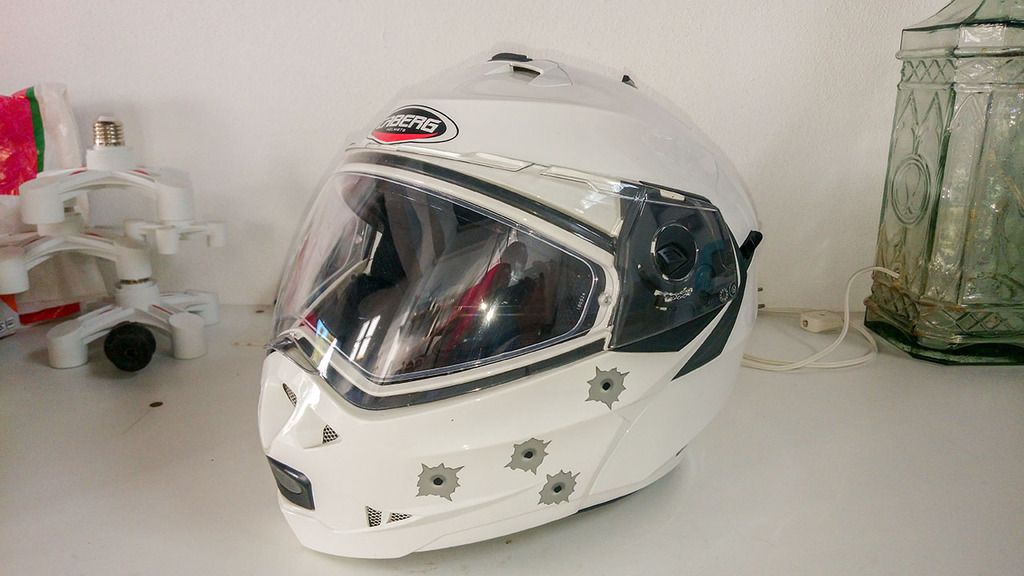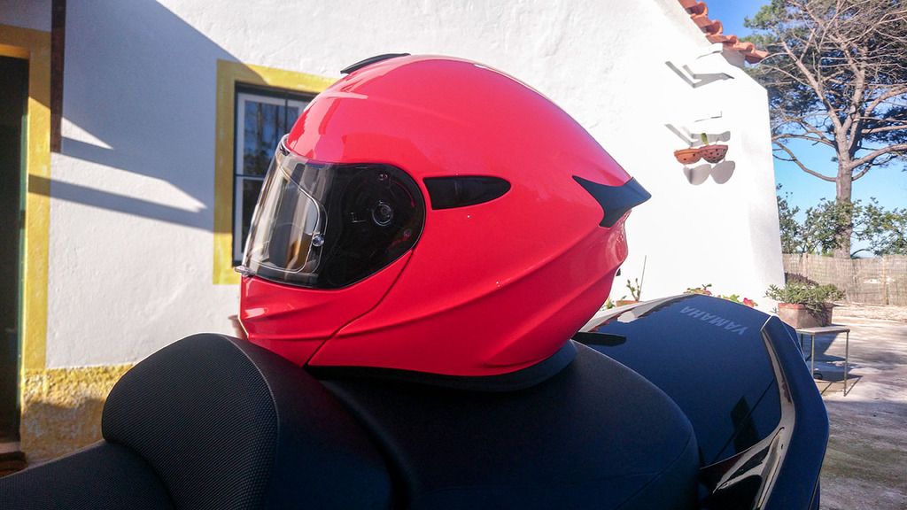 (....)mas vai-se aguentando, e também o facto de a parte frontal do capacete quando levantada não tem fixador forte e se passar num solavanco mais pronunciado cai sozinha... (....)