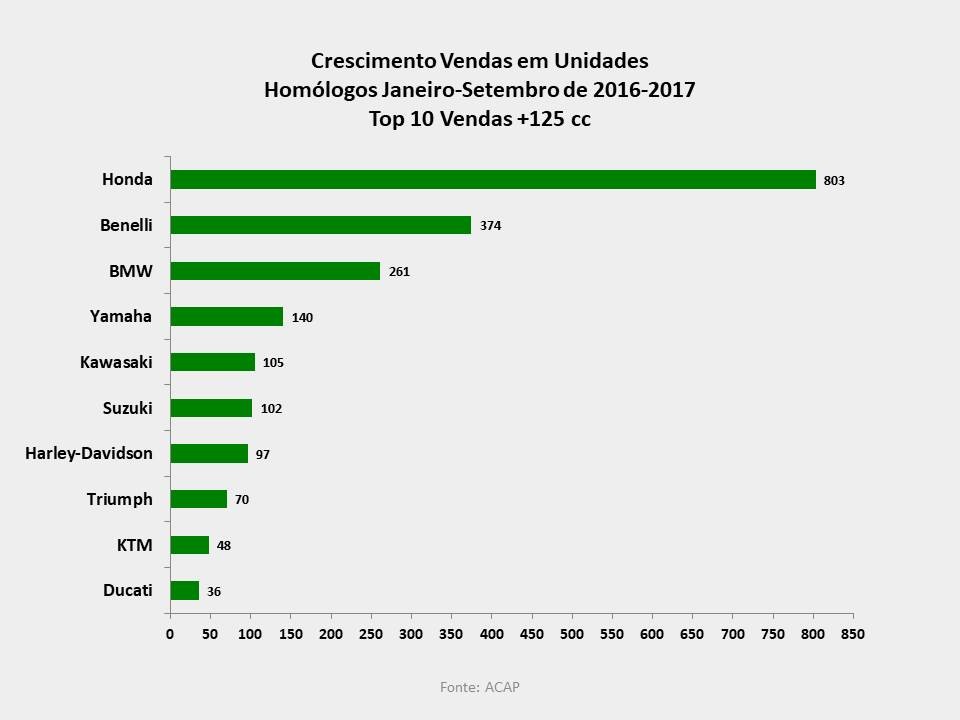 Segundo dados da Motociclismo de Outubro e vindos da ACAP são estes de Janeiro a 31 de Agosto de 2017 + 125: