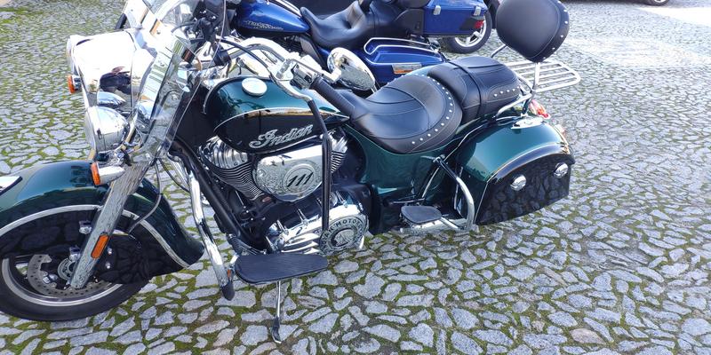 Hoje num almoço de família para onde fui, num restaurante conhecido em toda a zona do Alto Alentejo, dei de caras logo à entrada com estas duas motos....uma Indian e uma Harley-Davidson.