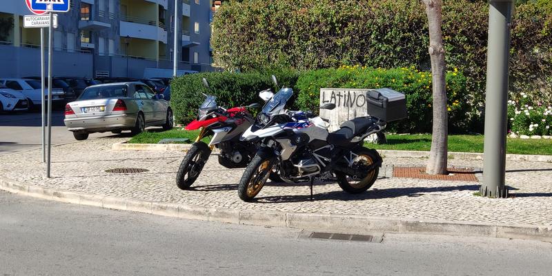 Neste domingo passado, dia em.que a minha mulher fazia anos, fomos com os putos a Setúbal e à Tróia...e mesmo em frente ao local onde se almoçou (Mineiro), estavam estas duas, que me despertaram a atenção por se tratar da gama G e R das GS's (os "extremos" por assim dizer).