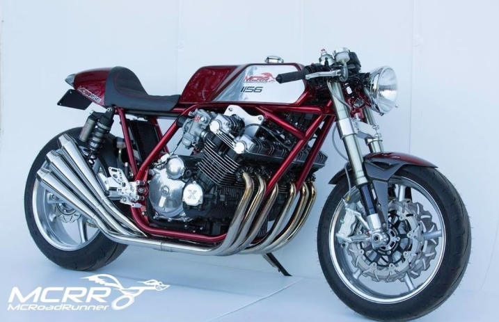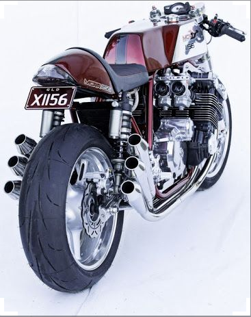 O gigantesco motor de uma Honda CBX, num quadro da Norton.