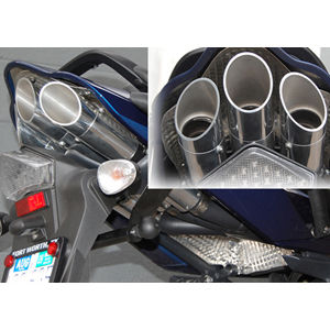 Por exemplo, para a minha moto, por ser já um modelo descontinuado, apesar de ter existido alguns modelos de escapes after-market bem interessantes, actualmente a única solução são os Trident-Exhausts, em que há hipótese da ponteira ter dois formatos distintos: