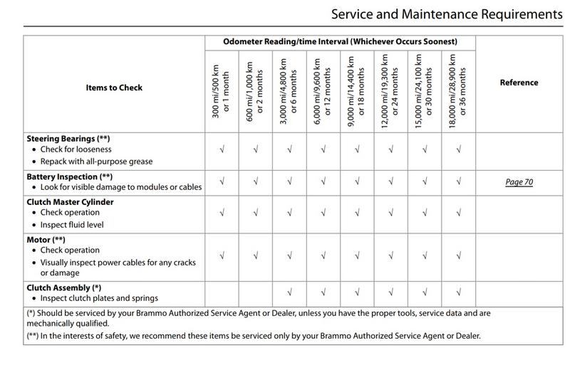 Mas o custo de manutenção pode ser superior noutras motas, por exemplo a Brammo e a Volta têm tracção por corrente e correia respectivamente, que têm de ser trocados em intervalos pré-definidos.