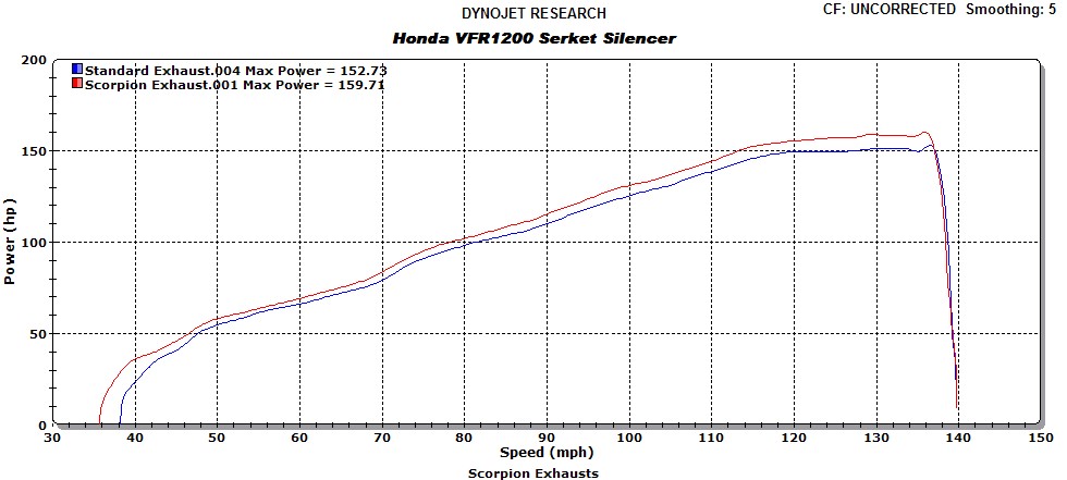 Para a VFR1200F, a gaja perde quase 18cv à roda. Anuncia 170cv...