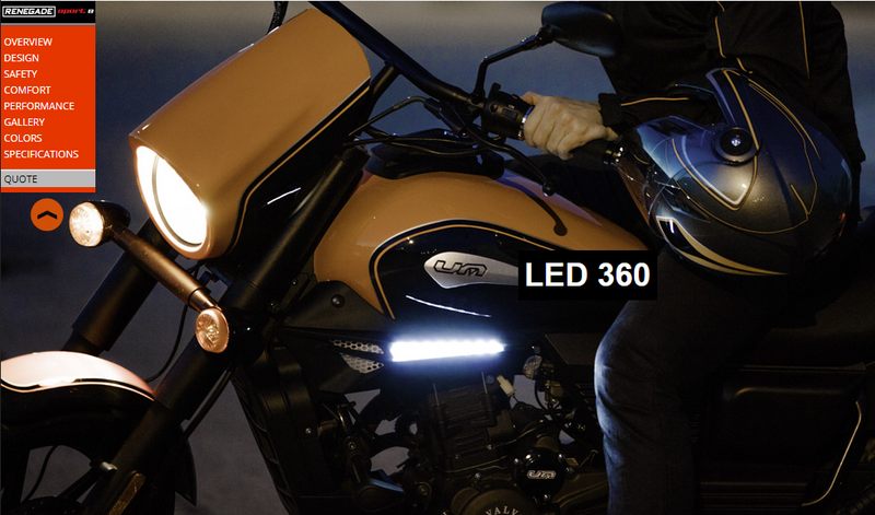 Citação de: Quico em Dezembro 21, 2018, 12:15:29, 12:15Eu é que estou muito curioso para ver e ouvir uma UM dessas ao vivo.E agora nas "novas" Renegade Sport S (de produção mais recente, vá...) até têm aquilo que designam por LED 360º.Trata-se de um valente Led de cada lado da moto... "Motorcyclist safety has become a large part of our innovations and a unique characteristic of UM motorcycles. Visibility is very important when riding a motorcycle from the first perspective to being seen by other drivers. Our 360 degrees illumination provides adequate lighting to enhance your safety and riding experience"